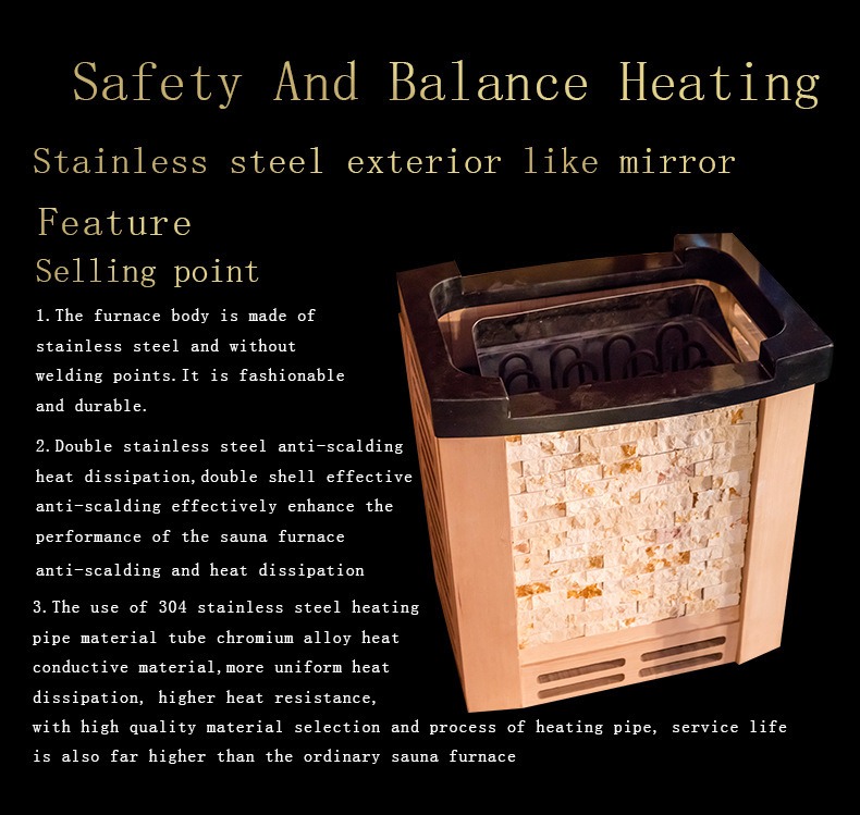 Dessutom är bastuaggregatet utrustad med ett överhettningsskydd som automatiskt stängs av när temperaturen överstiger säkerhetströskeln, dubbelt garanterar värmeeffektivitet och användarsäkerhet.