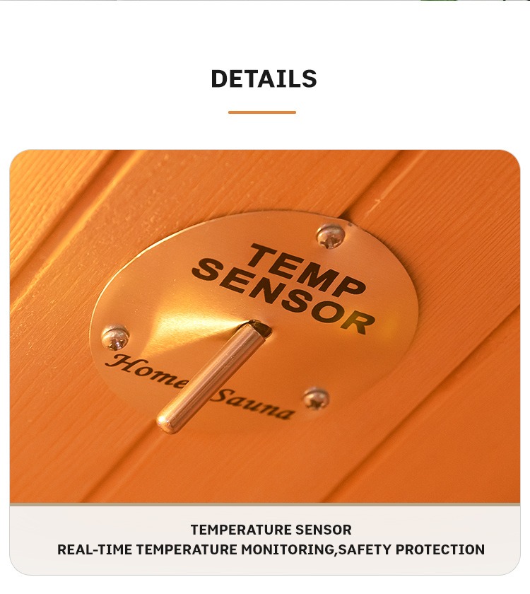 - Temperaturkontrollsystem i realtid: Inbyggd temperatursensor övervakar noggrant inomhustemperaturen för att säkerställa bastusäkerhet.