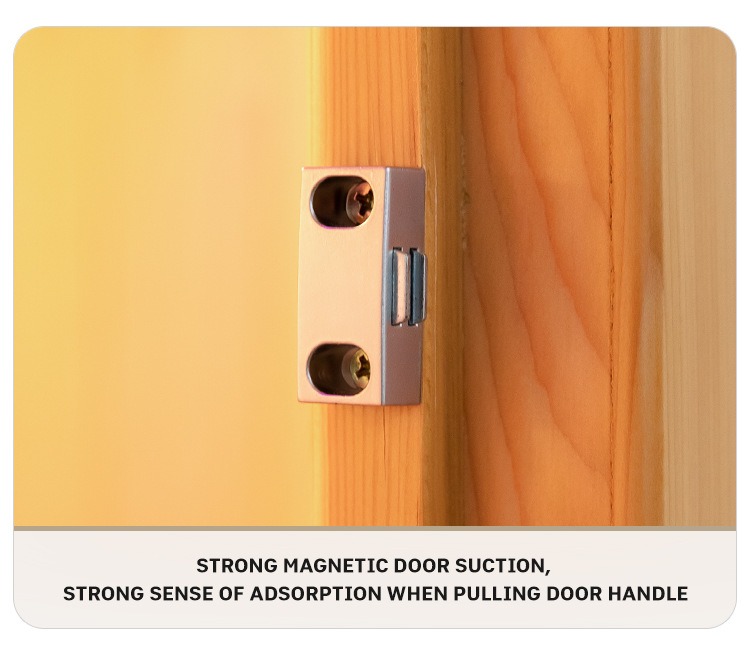 - Metallgångjärn och magnetisk dörrspärr: Metallgångjärn har stark belastningskapacitet utan deformation, och den magnetiska dörrspärren adsorberar tätt för att låsa in värme och avskildhet.