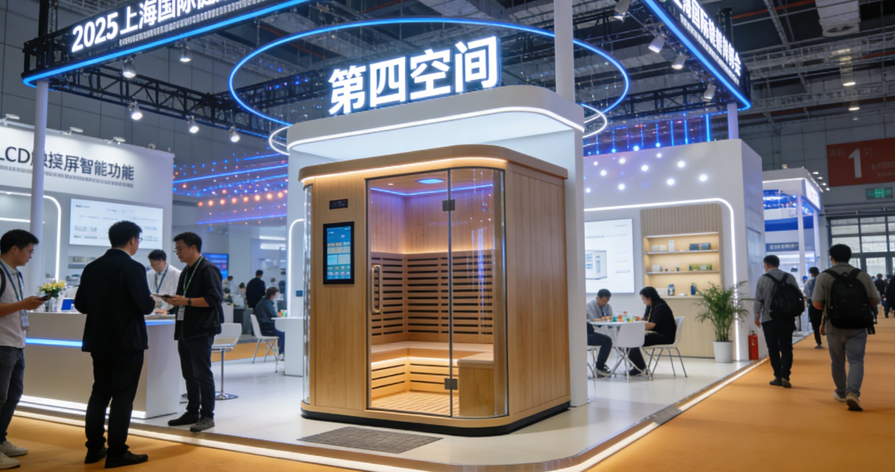 Vid den nyligen avslutade 2025 Shanghai International Health Industry Expo, konceptet "Fjärde utrymmet".bastu rumställt ut av företag som Xuzhou Kangzhiyuan har väckt uppmärksamhet. Produkten är utrustad med LCD-pekskärm, Tiktok livesändningsgränssnitt och rösttemperaturjusteringsfunktion, som stöder användardefinierad temperaturkurva och doftsystem (som att frigöra citrongräs eterisk olja vid 60 ℃, byta cedertromsdoft vid 80 ℃), och kan till och med länka den intelligenta toaletten för att övervaka svettsammansättningen.