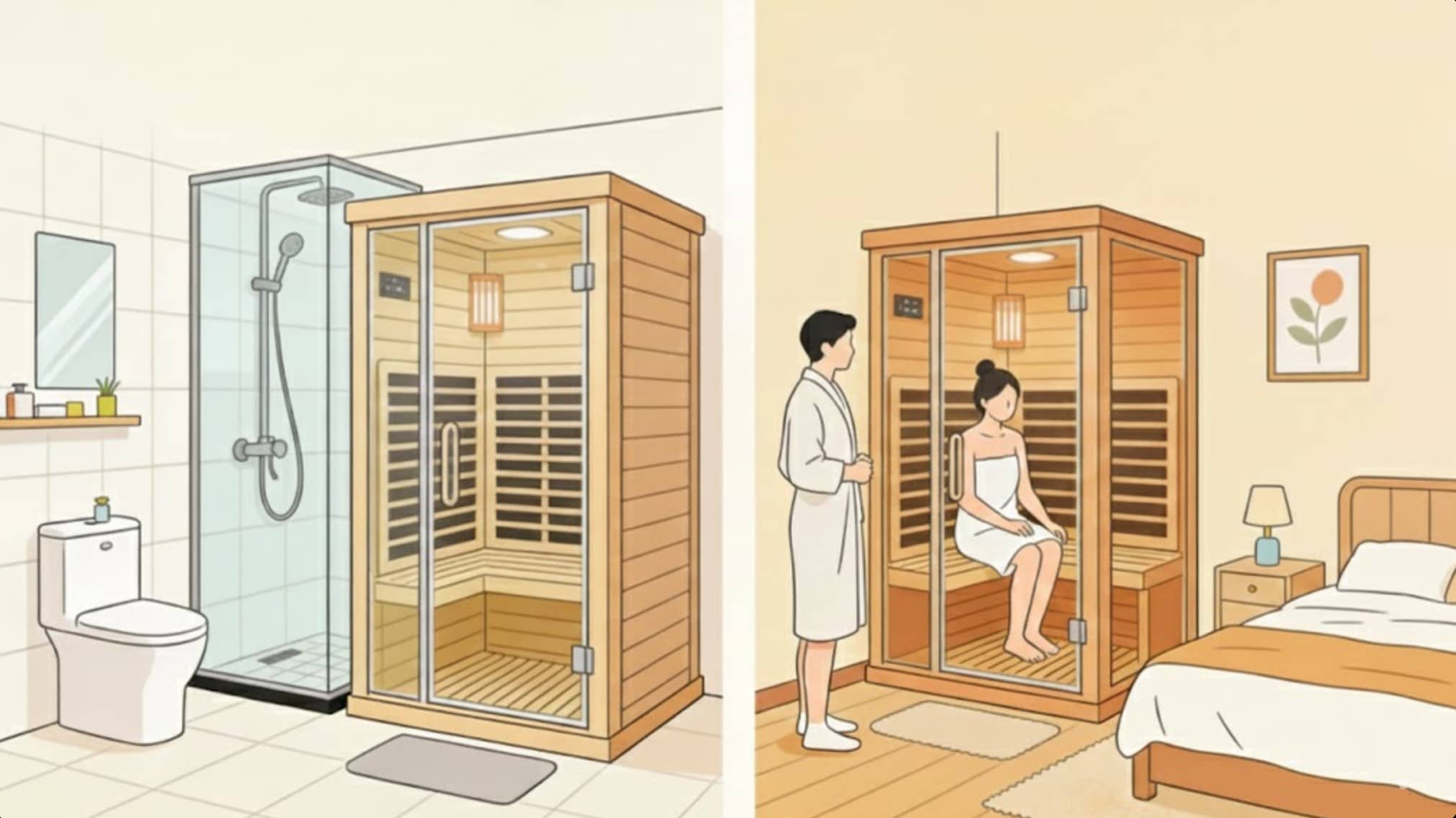 De två typerna av bastur är inte ömsesidigt uteslutande och kan användas i kombination beroende på årstid—använd fjärrinfraröda bastur på sommaren (torr och icke kvav, undvik överlagring av fuktig värme); använd ångbastu på vintern (varm och återfuktande). Familjer med tillstånd kan anta en "delrenovering + flexibel komplettering"-plan: installera en ångbastumodul i badrummet och placera en liten fjärrinfraröd bastu i sovrummet/balkongen för att maximera täckningen av hälsobehoven.