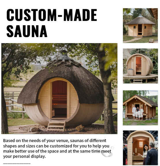 • Formanpassning: Fokuserar på utomhusanpassade former som tunnformade, trähusformade och sfäriska, vilket balanserar utrymmesutnyttjande och naturlig estetik. Oavsett om det är på innergårdshörnen eller campingplatserUtomhus glasdörr utomhus ångrumkan harmoniskt integreras med utomhusmiljöer som gröna växter och stenar.